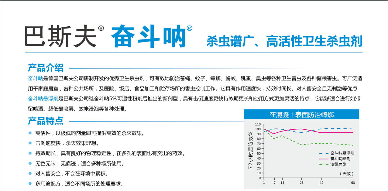 奮斗吶是巴斯夫旗下的一款廣譜類工業(yè)化殺蟲劑,主要使用的靶標(biāo)對(duì)象是蟑螂(蜚蠊)、蒼蠅、蚊子等有害衛(wèi)生害蟲。