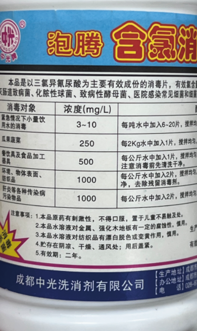 1片消毒片兌500ML水,噴灑在物體表面,瓜果蔬菜兌1:1000ML水侵泡10分鐘后洗凈